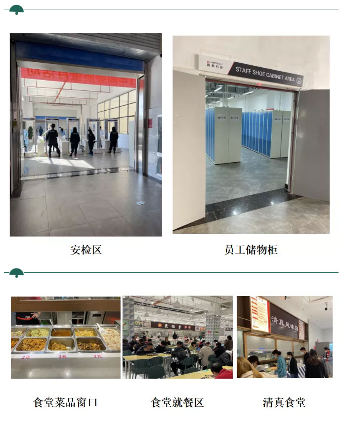 其它福利:免費提供員工住宿(6-8人間),宿舍內(nèi)配備獨立干濕分離衛(wèi)生間、洗衣機、飲水機、熱水淋浴、免費電視、寬帶網(wǎng)絡(luò)。公司生活配套設(shè)施完善,設(shè)有食堂、清真食堂、超市、電子閱覽室、理發(fā)室、乒乓室、桌球室、棋牌室、休閑茶吧、籃球場、足球場等。除此之外,每逢重要節(jié)日,公司面向所有員工發(fā)放慰問品。